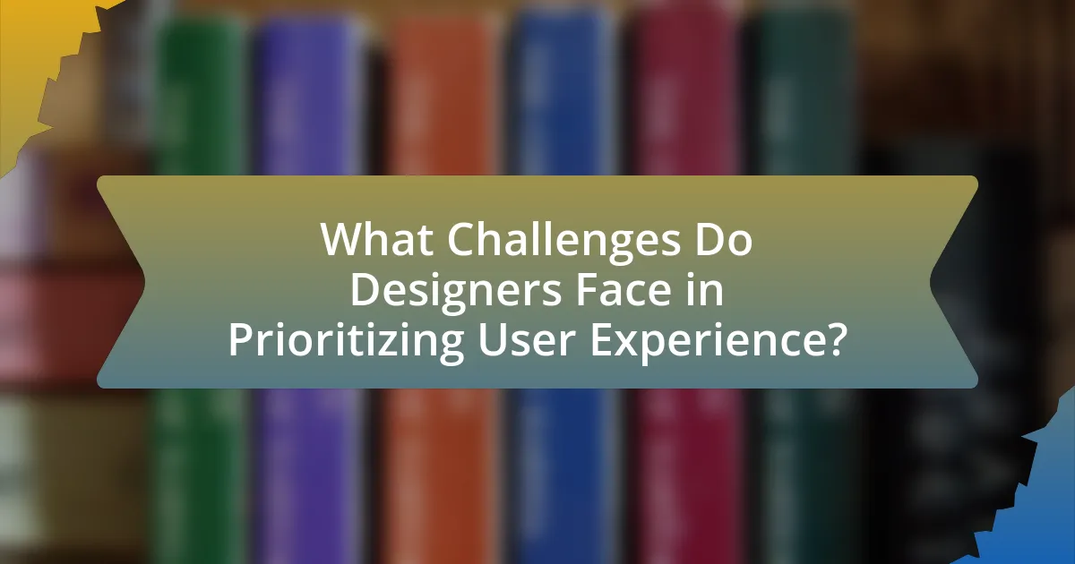 Designers face several challenges in prioritizing user experience, including balancing user needs with business goals, managing diverse user expectations, and addressing technical constraints. For instance, designers must often reconcile the desire for an intuitive and engaging user interface with the requirements of stakeholders who may prioritize cost or functionality over user satisfaction. Additionally, user demographics can vary widely, leading to conflicting preferences that complicate design decisions. Technical limitations, such as platform compatibility and accessibility standards, further hinder the ability to create a seamless user experience. According to a study by Nielsen Norman Group, 70% of users abandon a website due to poor usability, highlighting the critical need for designers to effectively navigate these challenges to enhance user experience in academic eBook design.